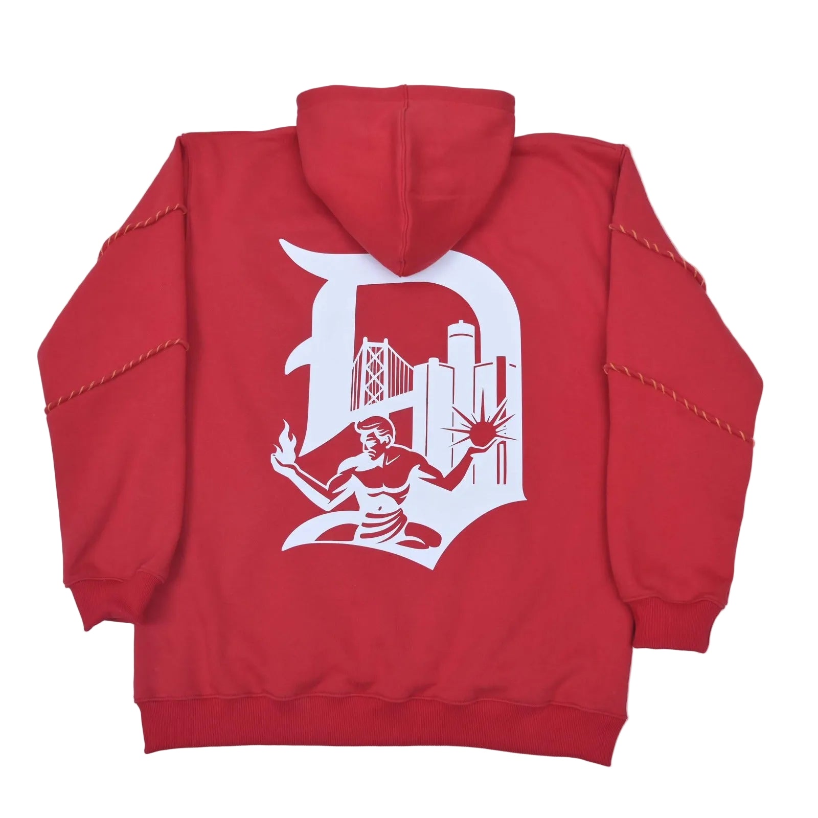 The Heart of the D hoodie features a vibrant red design, showcasing a 313 graphic within a heart on the left chest and a prominent “Shamburgers Inc D” on the back. The rope piped sleeves enhance its aesthetic while providing a comfortable fit, making it a stylish choice for casual wear.